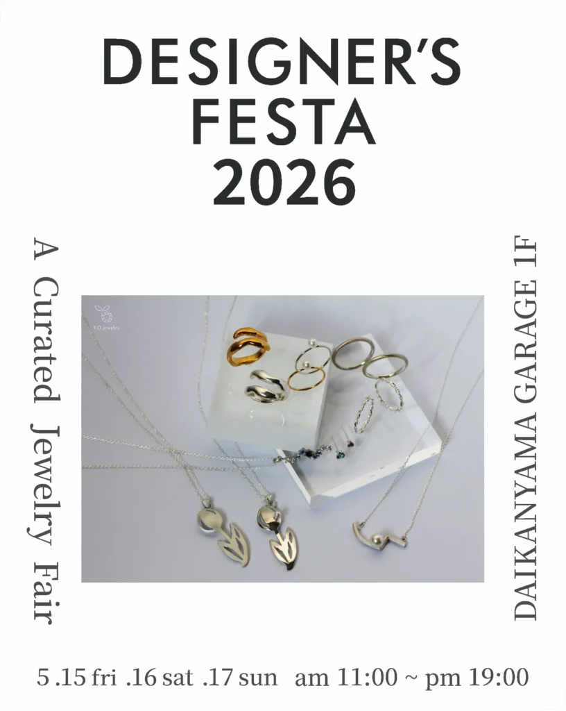 イベント期間(3日間)は全日在廊する予定です。新作も含めたジュエリーの販売やオーダーの受注など承ります。