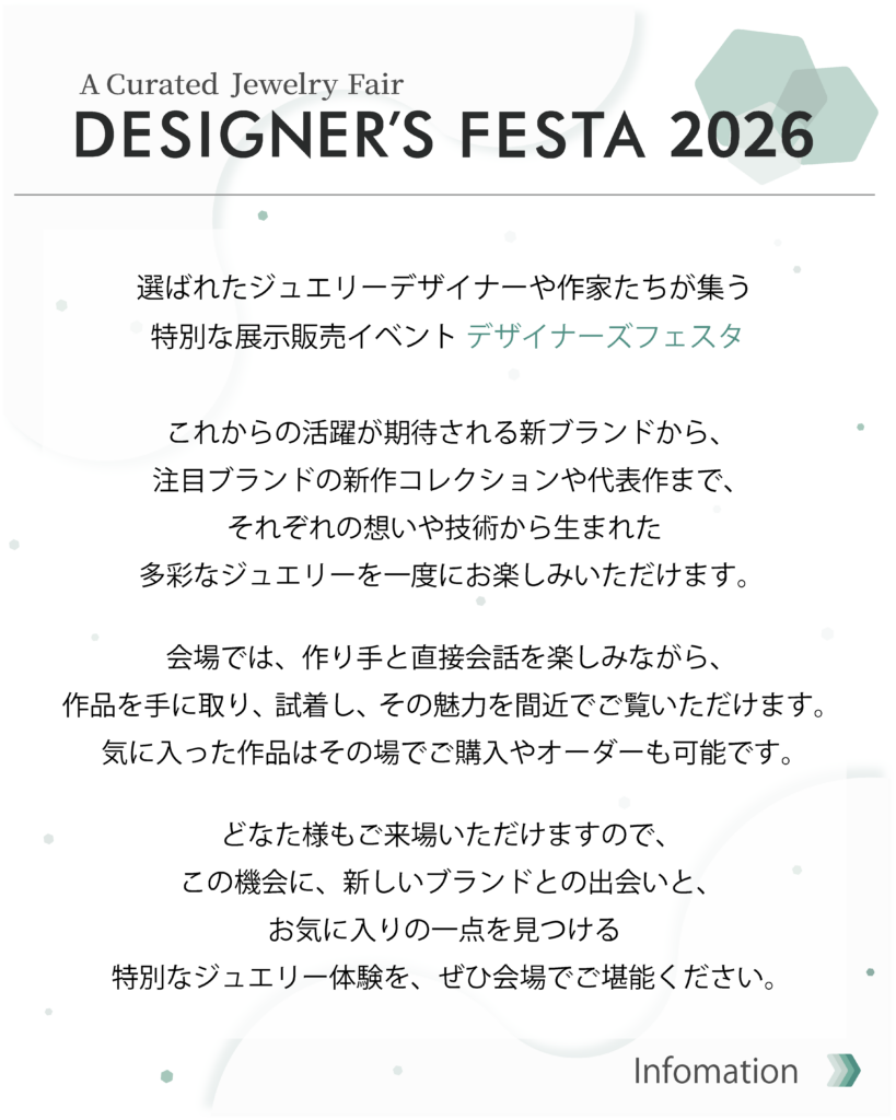 様々なブランド・作家様が出店する展示販売イベント、『DESIGNER’S FESTA 2026』に出店することとなりました。