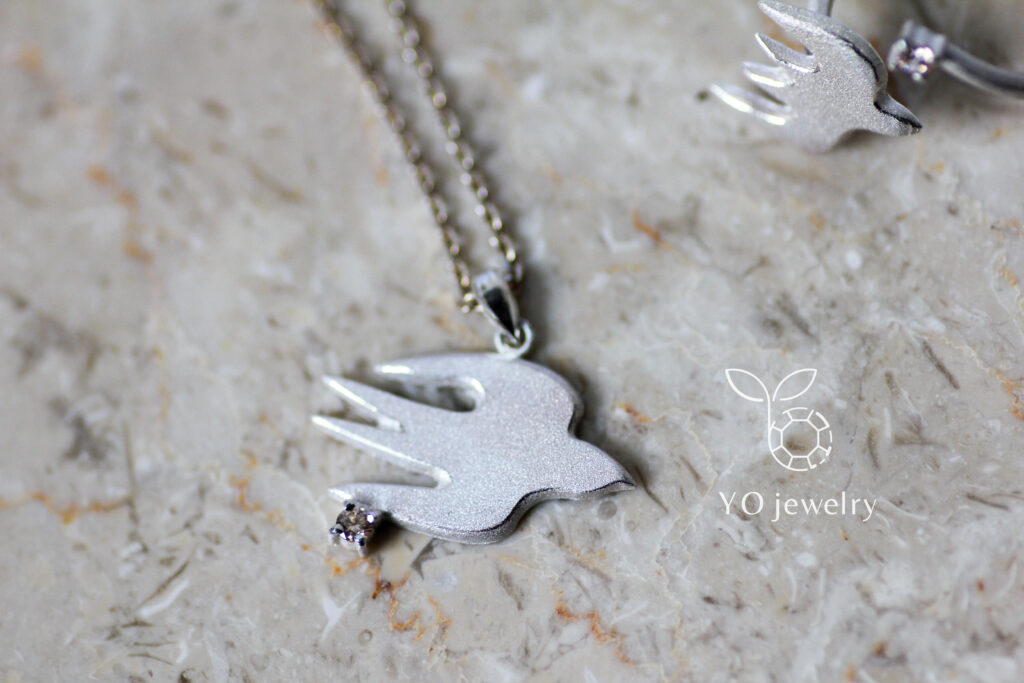 今回は風を切るように飛ぶ姿をジュエリーにしてみたいと思いました。